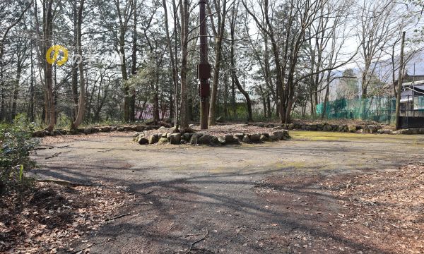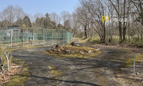 北東側から眺める。別荘地内にあるテニスコートに隣接する。