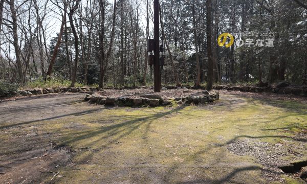 北東側から。ここにも携帯電話の基地局らしい塔が立っている。