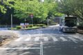 周辺道路と異なり、環道部分は透水性または保水性の舗装材が敷かれている。路面が傾斜しているわけではないし冬季に路面凍結のおそれがある地域でもなく、意図が読めない。