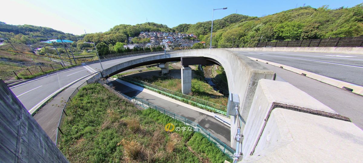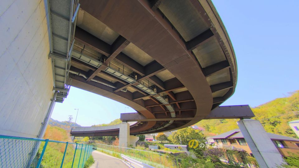 大西ループ橋全景。交差部はカルバートであり、実は大西ループ橋自体はループしていないことがわかる。