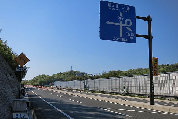 中国道西宮山口JCTから宝塚西トンネルの間の谷間を並走する国道176号は、周辺の宅地開発で人口が大幅に増えたにも関わらず昔ながらの規格で交通容量が少ないうえに、大雨の際には通行止めになる区間があって、現代の交通難所である。その改良を図るため昭和の時代に事業化され、現在も工事が進められている。改良しようにも道路用地の余白が少なく、また、公図に不備があったとかで買収が難航したそうだが、2015年7月26日に「2工区(名塩工区)」が供用開始となった。