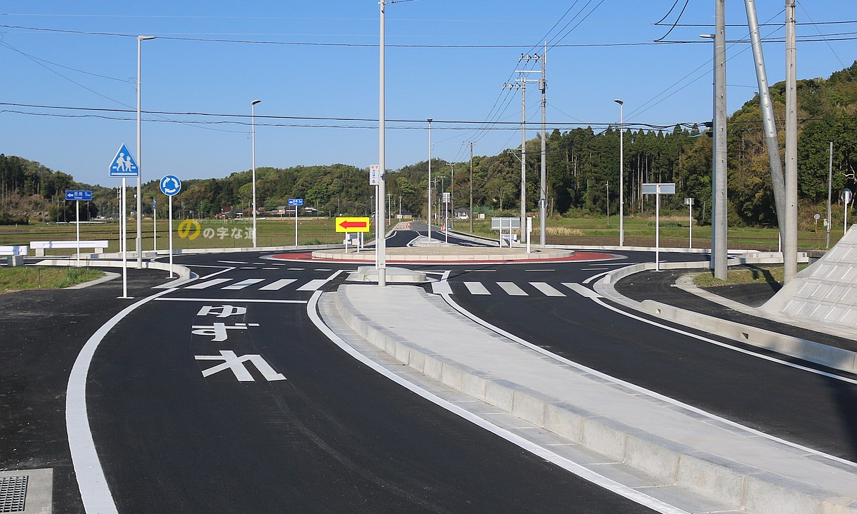 圏央道・茂原長柄スマートIC近くにある長柄町道の交差点がラウンドアバウトに改修され、2021年3月30日に供用開始された。