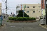 千里金蘭大学前ロータリーを東側(大阪大学吹田キャンパス側)から眺める。交通量は多めだ。