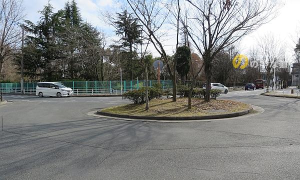 南側から眺める。環道の1/4相当部分は対面通行である。