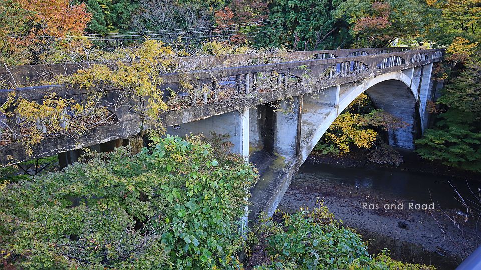 1937(昭和12)年完成、橋長66.5m支間長36.5mの3径間連続上路式RCオープンスパンドレルバランスドアーチ橋。戦前に建設されたRCバランスドアーチ橋は非常に少ないらしい。
