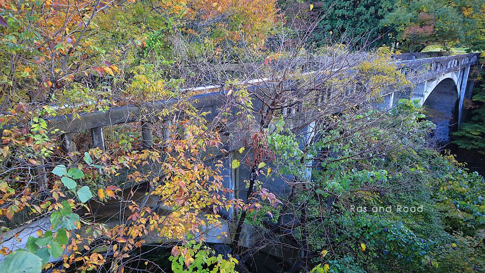 両岸の樹勢が強く、バランスドアーチ橋らしく撮れる場所がほとんどない。