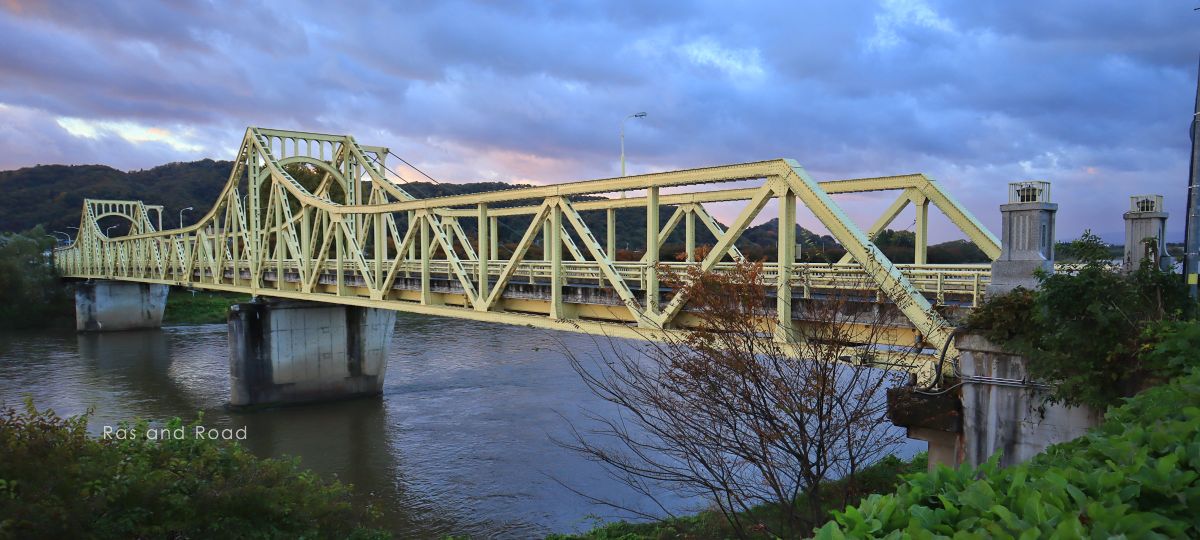 1933(昭和08)年07月完成、橋長254.6mの3径間鋼下路式ゲルバートラス橋+6径間RC桁橋。