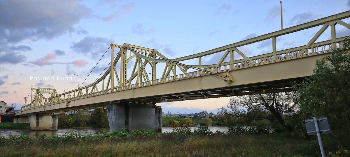 架設当初は府縣道梁川黒澤尻線で、1954(昭和29)年に二級国道107号大船渡本荘線になり、1993(平成05)年8月1km上流に日高見橋が完成するまで国道橋であった。