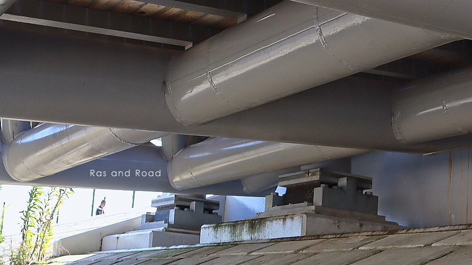 なんと、主構は逆三弦トラスだった。そして三弦トラスは高さ方向だけでなく横方向にも曲弦なのだ。このような構造物を他に知らないので例えようがない。