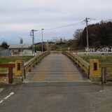 1988(昭和63)年8月完成、橋長14mの単径間木造桁橋。秋田スギの集成材が使われている。