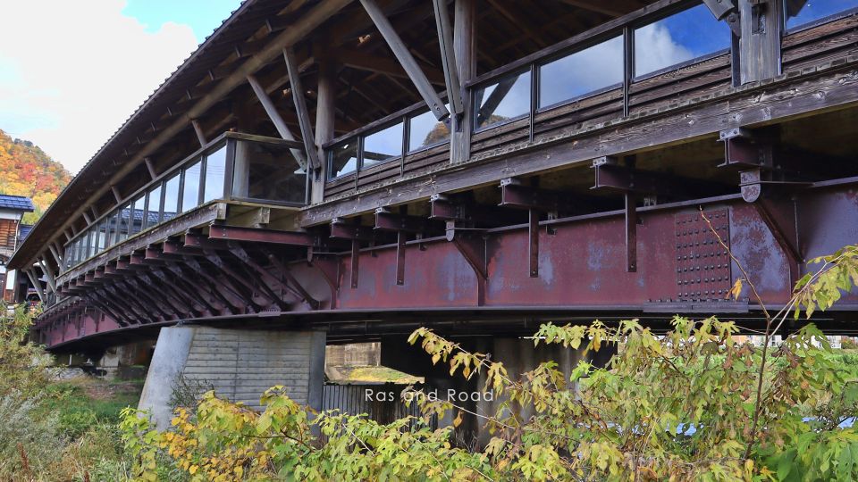 床版から上の上部構造は木造。地元の金山杉を使用し、地元の大工が伝統工法で建築したそうだ。うん、確かにここまで立派な屋根は土木の枠を超えた建築物だ。