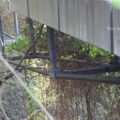 3径間のうち中央径間に立田川が流れる。橋の奥(下流側)には現住住戸がある。