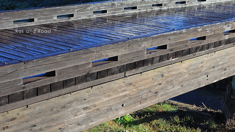 2014(平成26)年完成、橋長14.4mの2径間木造桁橋。