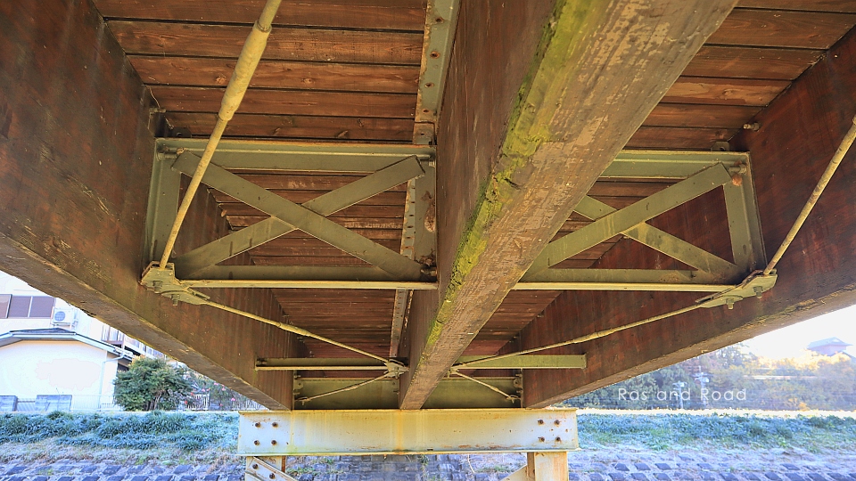 対傾構と横構は鋼製で主桁は集成材が使われている。