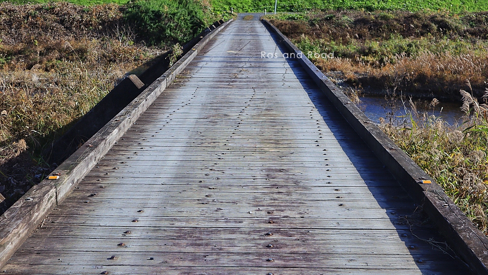 橋を歩いてみると、床版取り付けのボルトが酔っ払いの千鳥足になっていることに気付く。まっすぐに歩いても斜めに進んでいる気がして歩きにくい。どないなっとんねん、と桁下を覗いてみたら。