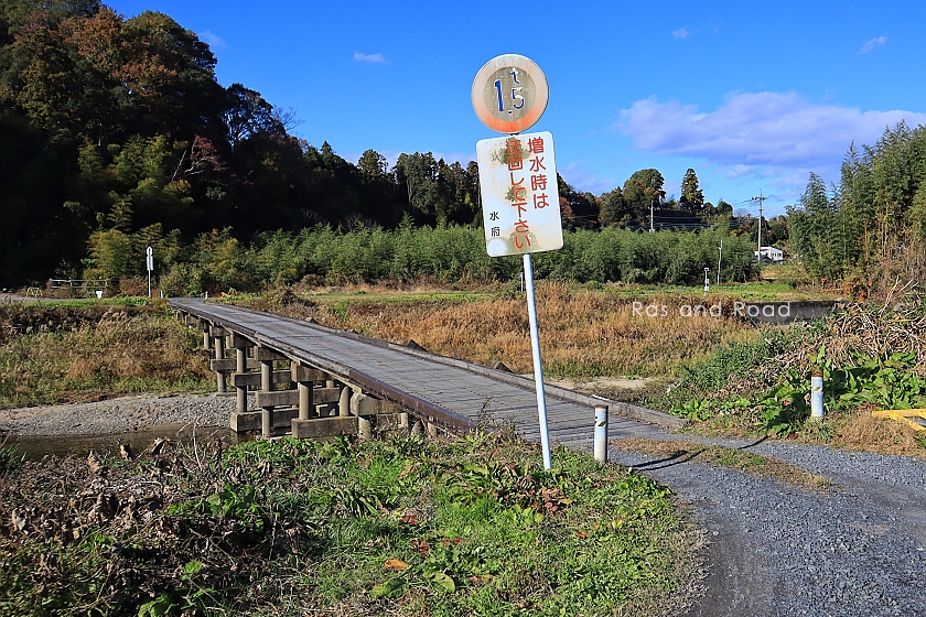 橋脚はコンクリートパイル、流木よけは鉄筋コンクリート製で、橋の上部工は流れ橋の構造になっている。