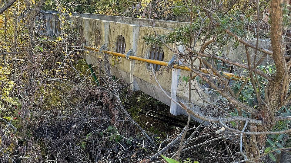 利根川水系吾妻川の支流、大堀沢に架かる人道橋。