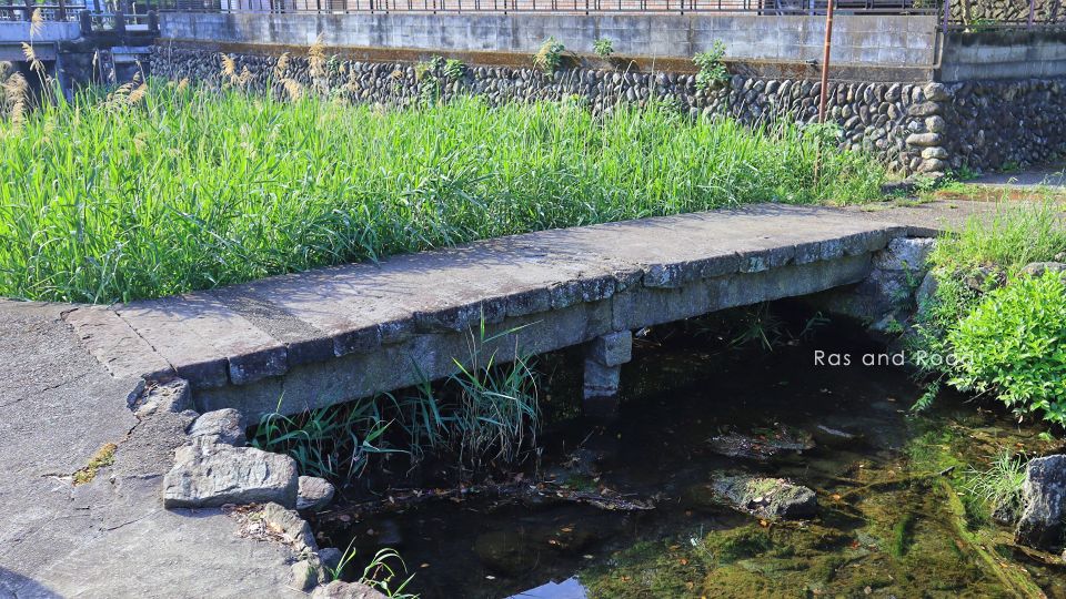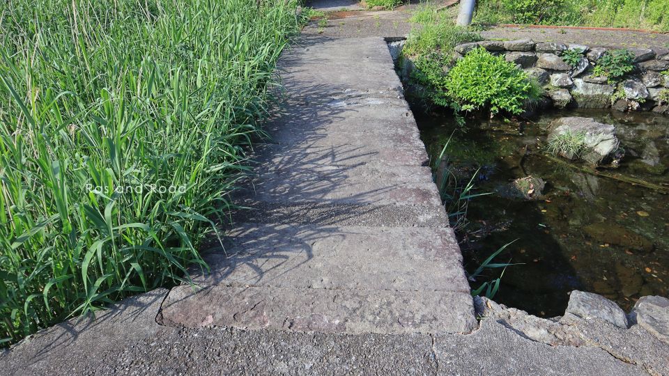 完成時期不明、橋長6.5m(当社測定)の2径間石造桁橋。すぐ横に清水橋(1932(昭和7)年完成、橋長8.4mの単径間RC桁橋)が架かっている。