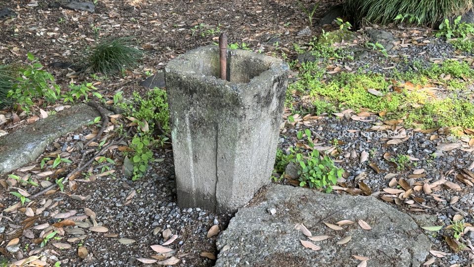 近くにこんなものがあった。江川某が製造した消防ポンプを使った消防水利井の可能性が高いと見る。地下タンクとは思えず、地下水をポンプで汲み上げる方式だろう。コンクリートの品質から想像するに、関東大震災後に作られたものか。