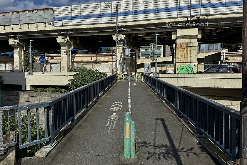 この橋に関して特筆すべき点は、橋の北詰で首都高速道路2号目黒線天現寺出口に交差しているため、自動車専用道路に横断歩道が設けられていることだ。厳密には横断歩道の区間のみ自動車専用道路に指定されていないようだが、それは書類上の話に過ぎない。
