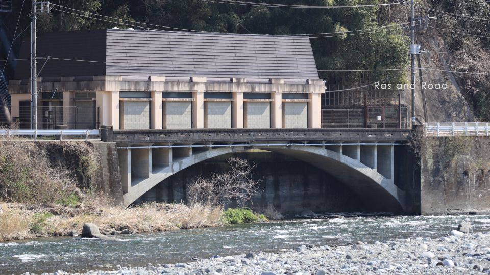 対岸から見たときには桟道橋だと思ったが違った。嵐発電所は1920(大正9)年8月に運転開始なので、現在の湯觸橋が架けられる前にもここに橋があった可能性が高い。発電所の放水路をここではなく20mほど下流に設けたのはどんな制約があったのだろうか。