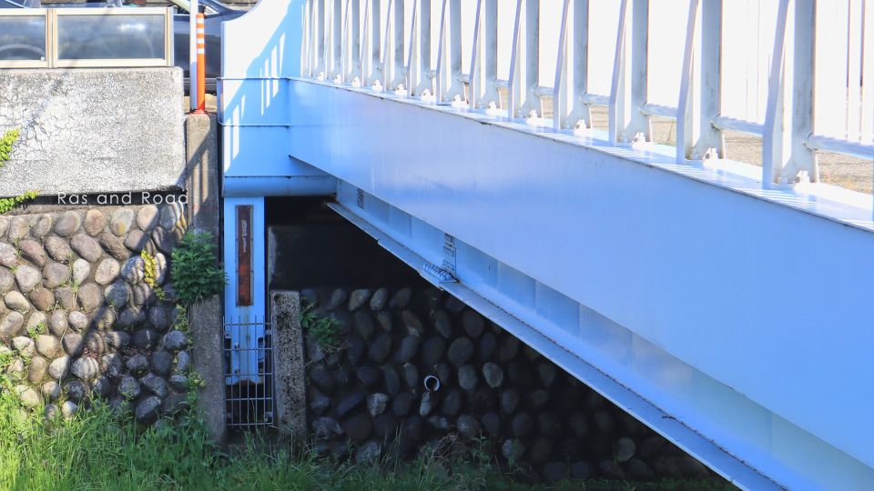 左岸上流側に昇降ゲージがあったが、カバーが変色してよく見えない。