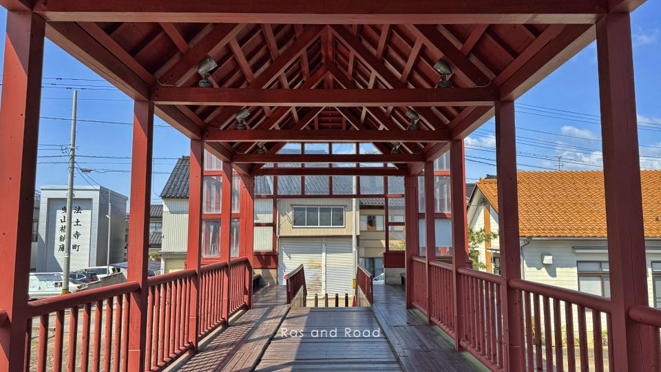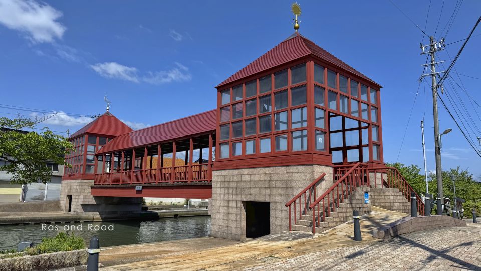 1992(平成4)年10月完成、橋長21.5mの単径間鋼上路式I桁橋。弁柄色の屋根付橋や橋台の大きさなどが異彩を放つ。