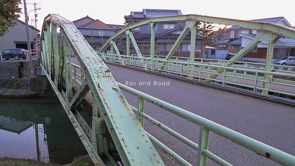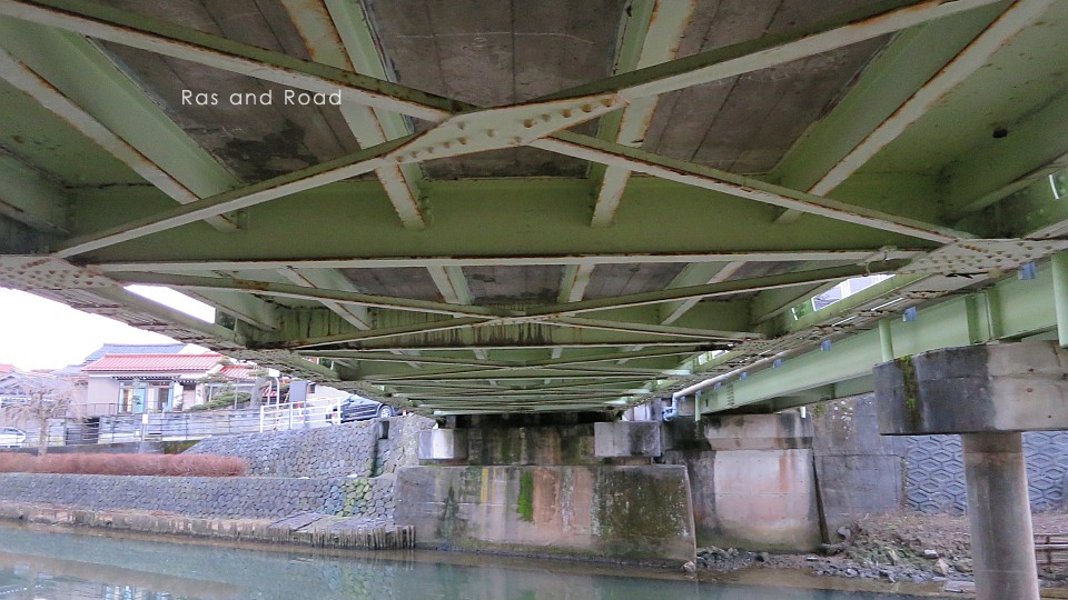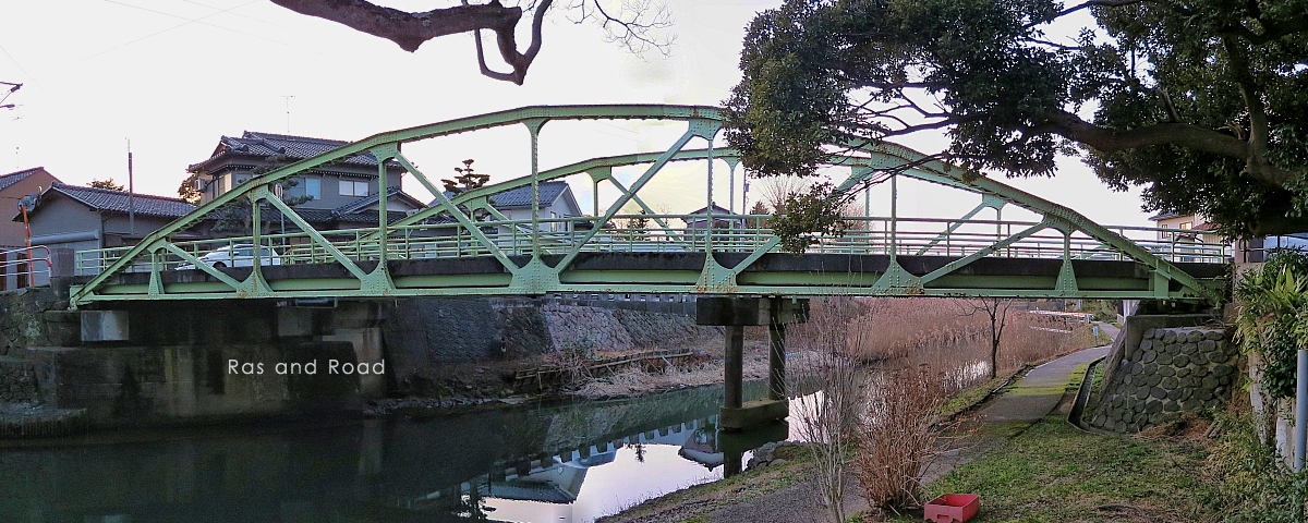 大聖寺の中心部、旧大聖寺川に架かる下路式ポニーボウストリングプラットトラス橋。