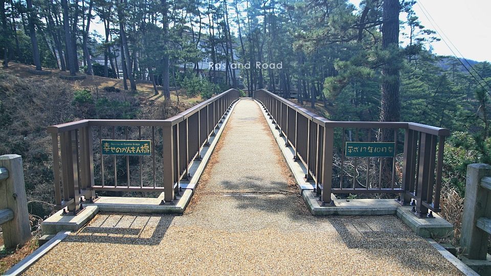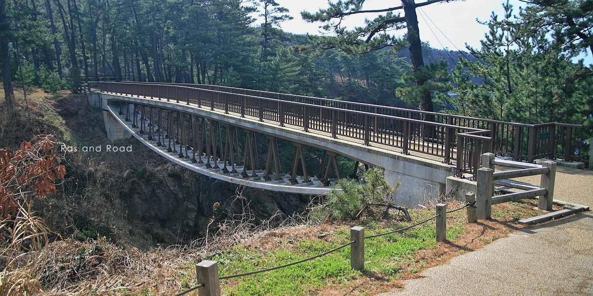 能登金剛で知られる巌門園地の入江に架けられた人道橋。