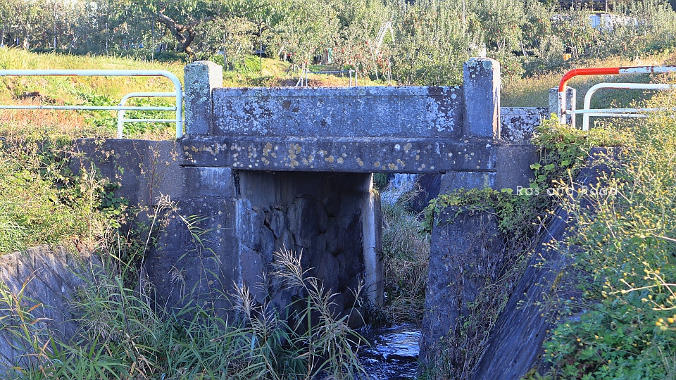 1885(明治18)年4月に完成した石造桁橋の主桁を1955(昭和30)年にRC床版に置き換えた。橋長3.5m幅員4.5mで、先代もほぼ同じだったようだ。
