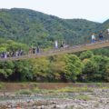 2001(平成13)年2月完成、橋長94mの単径間上路式トラス補剛PC吊床版橋。支間長82mサグ3.28m有効幅員2.0m。