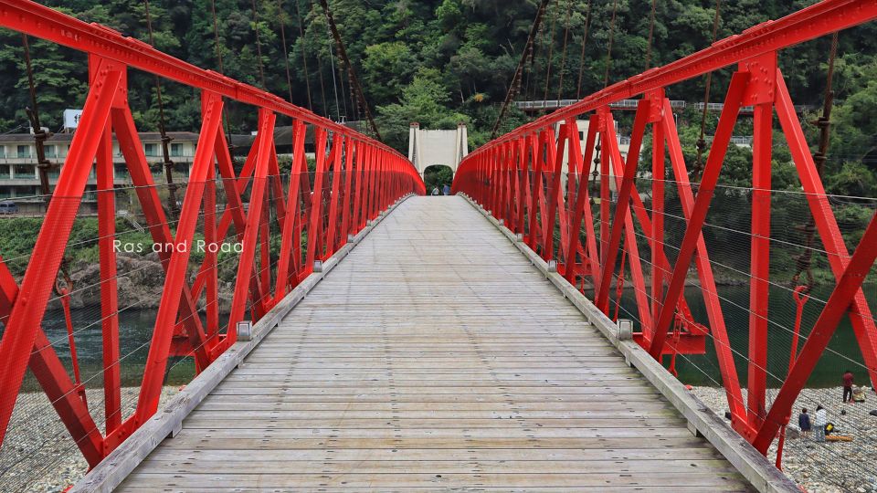 1916(大正05)年08月完成、橋長113mの単径間鋼トラス補剛吊橋、RC主塔。現存最古の近代的吊橋とされる。