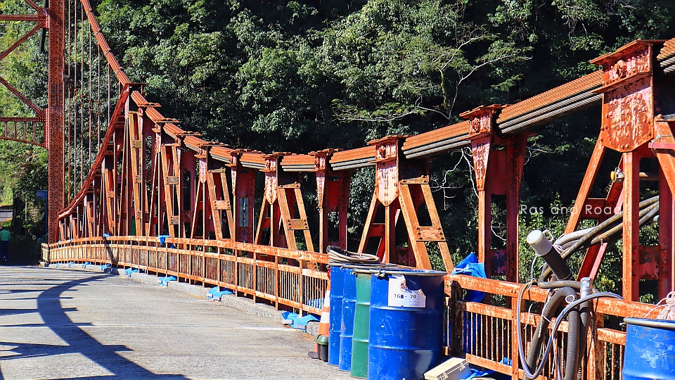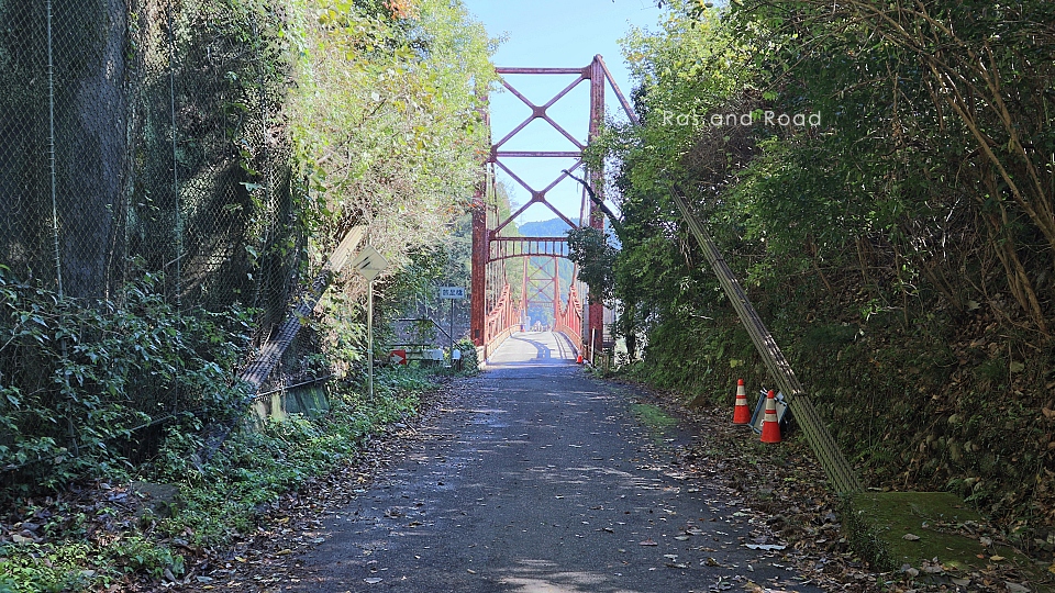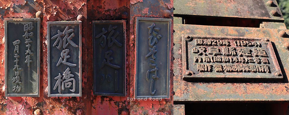 橋長について、歴史的鋼橋検索やWikipediaでは114mとされているが、これは吊橋部分の長さである。右岸側に10.6mの鈑桁橋が繋がっているので、旅足橋としては国土交通省の道路メンテナンス年報(橋梁点検結果)のとおり124.6mが正しい(はず)。