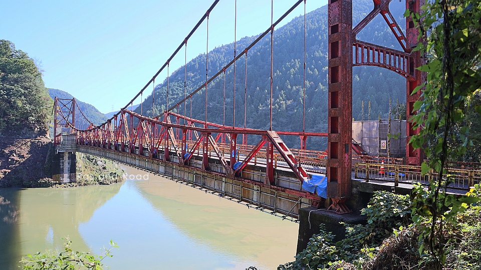 橋名板に記された竣工日は昭和29年4月29日だが、上部工の工期は昭和29年3月25日~8月17日だったらしい。1ヶ月で完成するはずがなく、竣工日は主ケーブルが渡された日だろうか。それとも補助金獲得の都合など政治的なものだろうか。