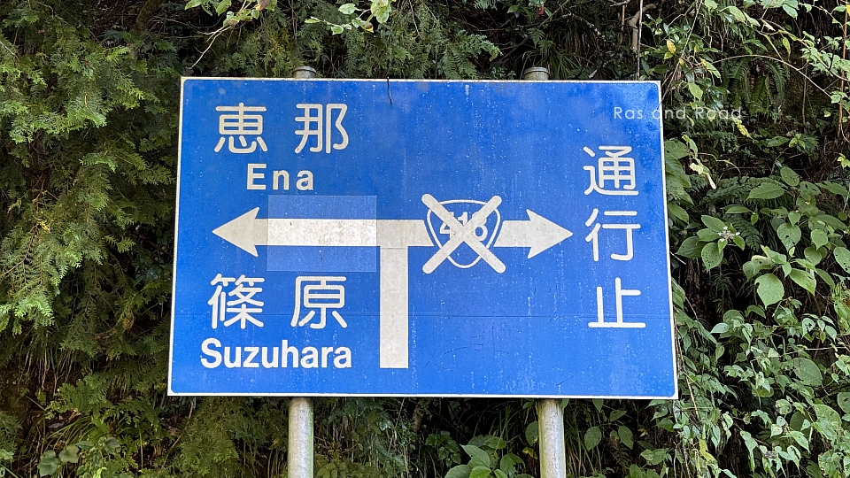国道を否定する青看板。左折方向は県道353号だと記憶していたが、いつの間にか指定が外されたようだ。篠原と書いてスズハラと読ませるのもなかなかの難読地名。