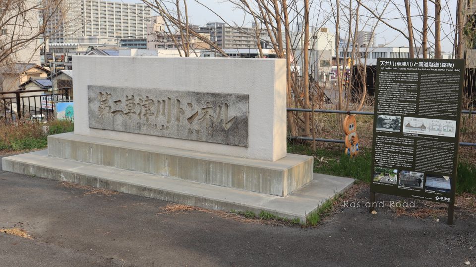 草津宿橋の東詰に第二草津川トンネルの扁額が移設展示されている。