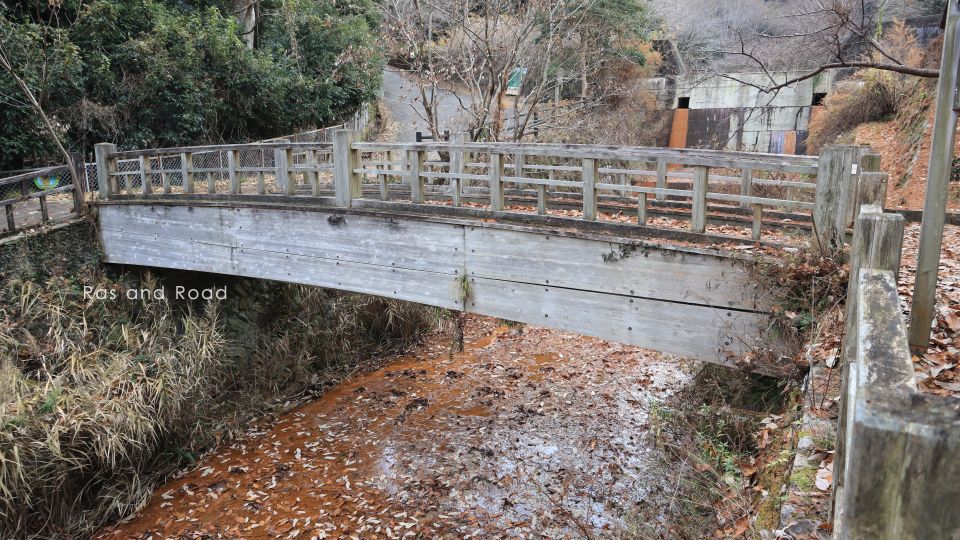 国土地理院空中写真を見比べると1985(昭和60)年には橋が架かっているが、現場の解説板を勘案するとそれは先代の橋と考えるべきだろうか。