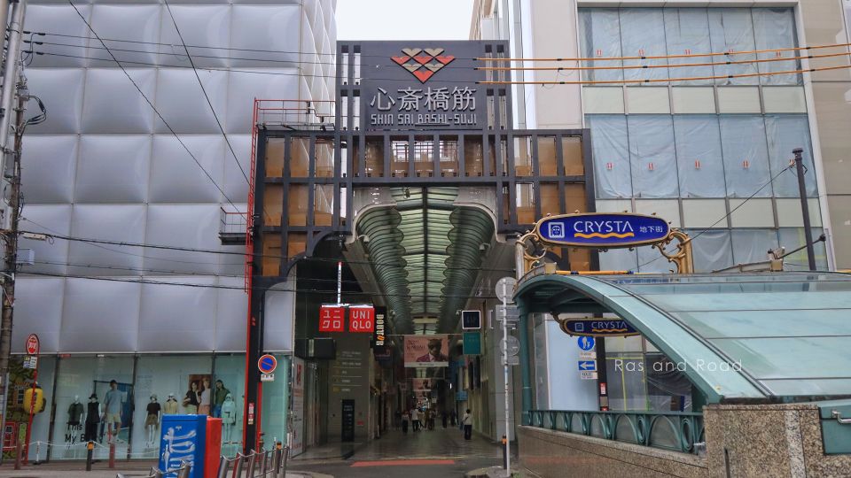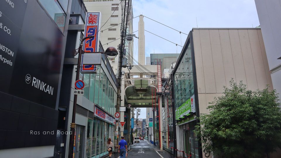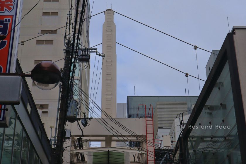 心斎橋の快活CLUBで寝落ちした(←この表現が重要)翌朝、店の写真を撮ろうとしたら背景に視線を奪われた。心斎橋筋商店街の上に吊橋がある。あれ?酔っ払っているのか?