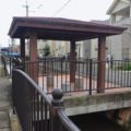 じっくり眺めてみたら、やっぱり吊橋構造で屋根を支えている。主塔は交差点の四隅に立てられた橋脚の上にある。