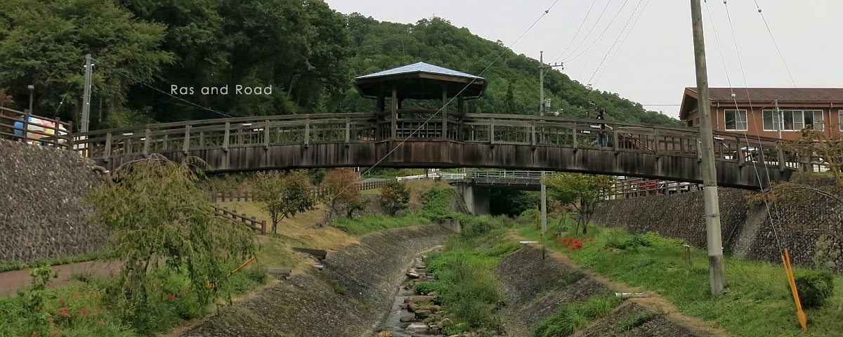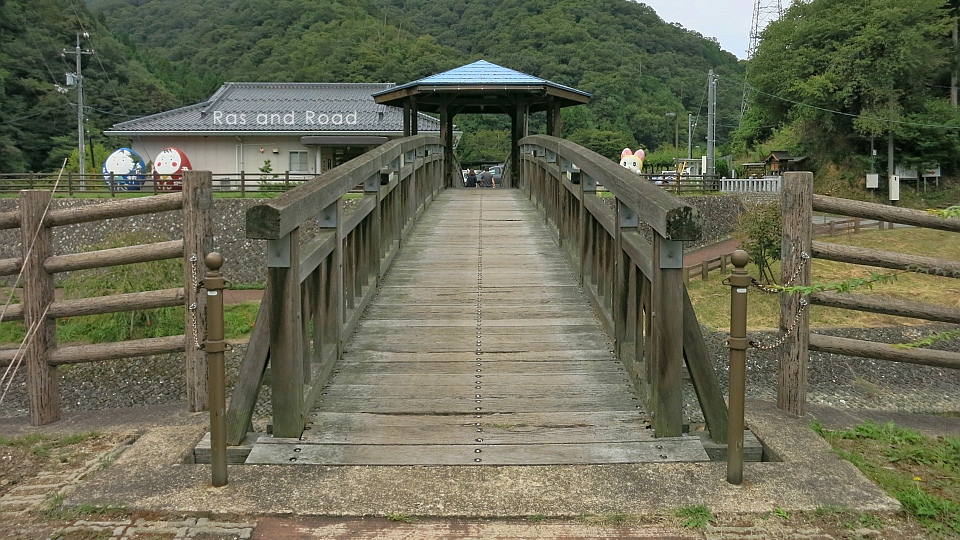 橋の中央部に四阿があるのを屋根付橋と言ってよいのか逡巡するが、予期せず屋根付橋に遭遇して予備知識がなく撮影したものだから、いろいろポイントが抜けた写真になってしまった。とりあえず、主桁が鋼製であることは確認済み。