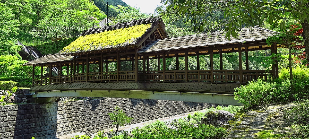 杉皮葺きの寄棟屋根と茅葺きの越屋根の組み合わせで豪華さマシマシ。