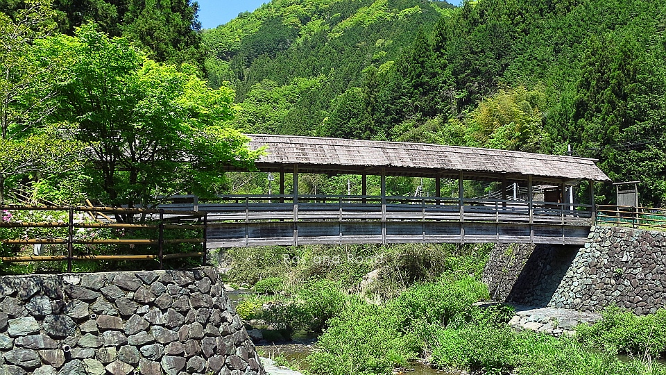 1997(平成9)年7月完成、橋長25.4mの単径間PC桁橋。橋を渡った奥に秋滝橋がある。(この写真は秋滝橋近くから撮影)