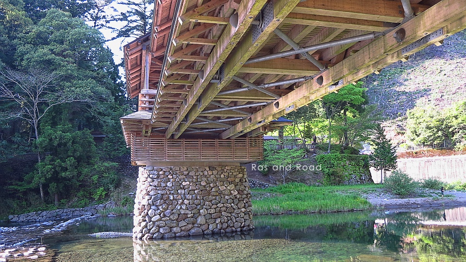 橋脚は梼原川で採取した自然石をRCコンクリートに巻き立てている。