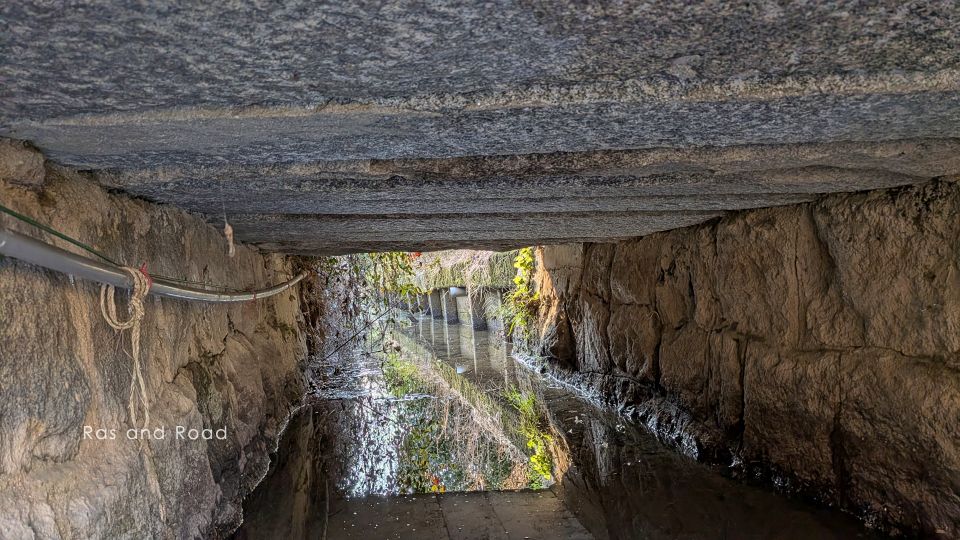 桁下を覗くとずらりと並ぶ石材。架設当初からこの幅員だったようだ。