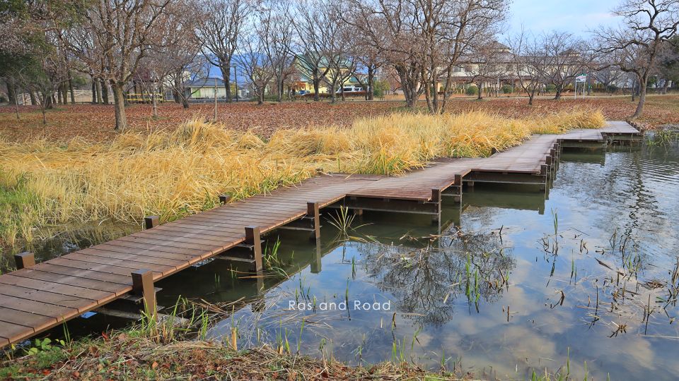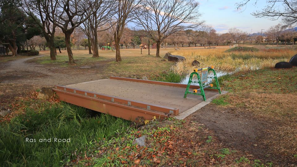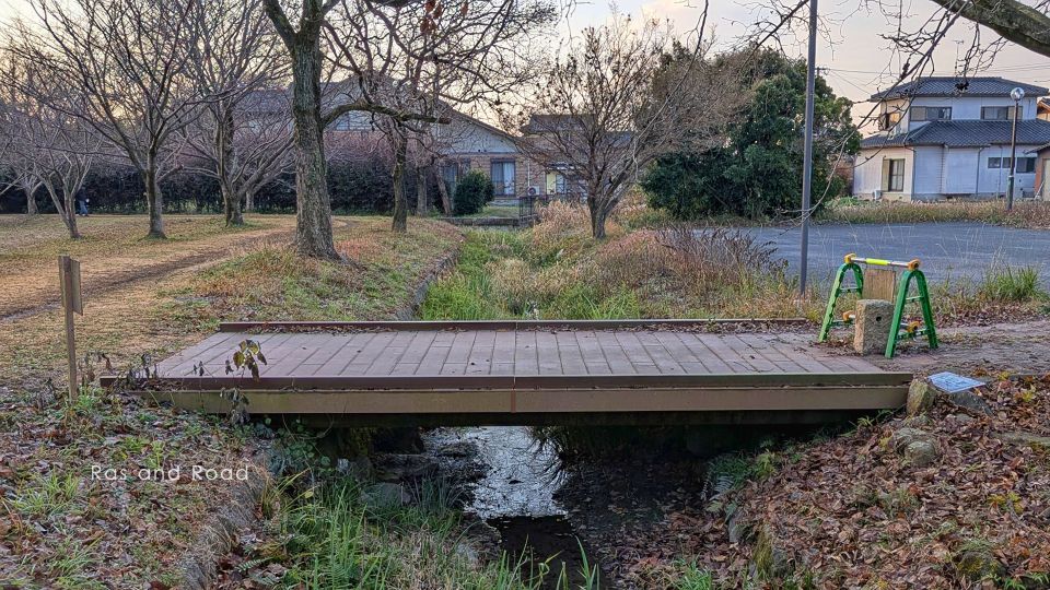 佐賀市の中心部から北5km、嘉瀬川本流から石井樋で分流して佐賀市街地を流れる多布施川。その石井樋近くに「身近な水辺で自然とのふれあい」をテーマとして整備されたのが多布施川河畔公園である。公園内を流れるせせらぎや脇を流れる多布施川にいくつか架けられている修景の橋のひとつ。