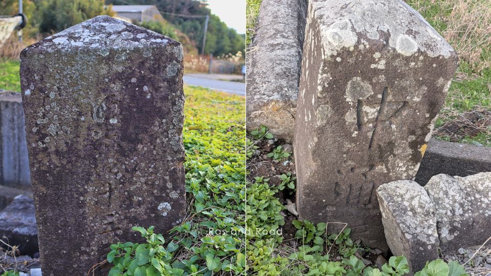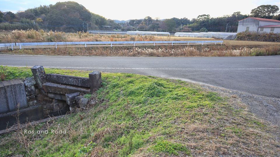 注目すべきは■■で、判読が難しい。私は「明治」と読んだが道路台帳は「昭和」と読んだのだろうか、それとも拡幅施工されたのが昭和43年だろうか。反対側のコンクリート桁はその品質から考えて昭和中期の施工だろうから、石橋が昭和43年というのは釈然としない。明治33年測図の地図によれば当時のこの道路は県道(府県道諫早鹿島線)だったと考えられ、幅員4m程度の石橋が架けられたことに違和感はなく、1910(明治43)年完成と見る。