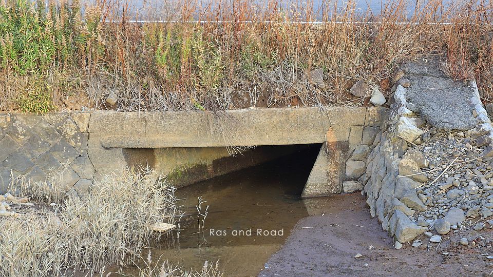江戸時代に干拓された中道開の調整池水路に架かる市道橋(旧国道橋)。