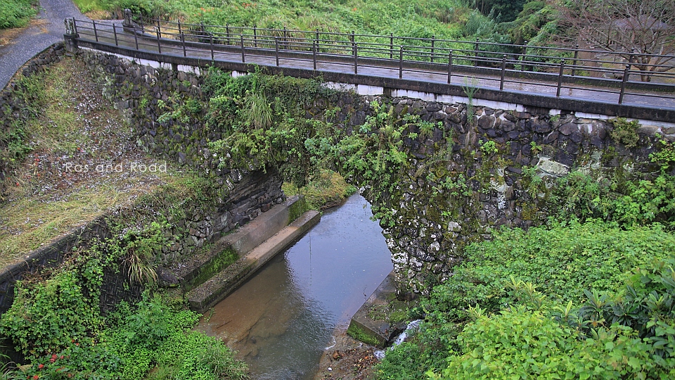 上流側の新元平橋上から眺める。橋面の高さは約7m。これだけの高さがありながら輪石が一重で100年近く健在とは、石造アーチの強固さに恐れ入るばかりだ。