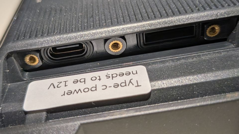 SRD5 SlimはUSB Type-Cの給電に対応しているが12V入力だ。PD対応(1.0以降で可)の給電ポートを車体側に用意する必要がある。防水対策が甘いので、車載でここから給電することは考えないほうがよさそう。