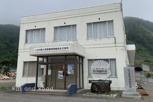 いぶり噴火湾漁協礼文支所と噴火湾ほたて貝養殖発祥之地碑
